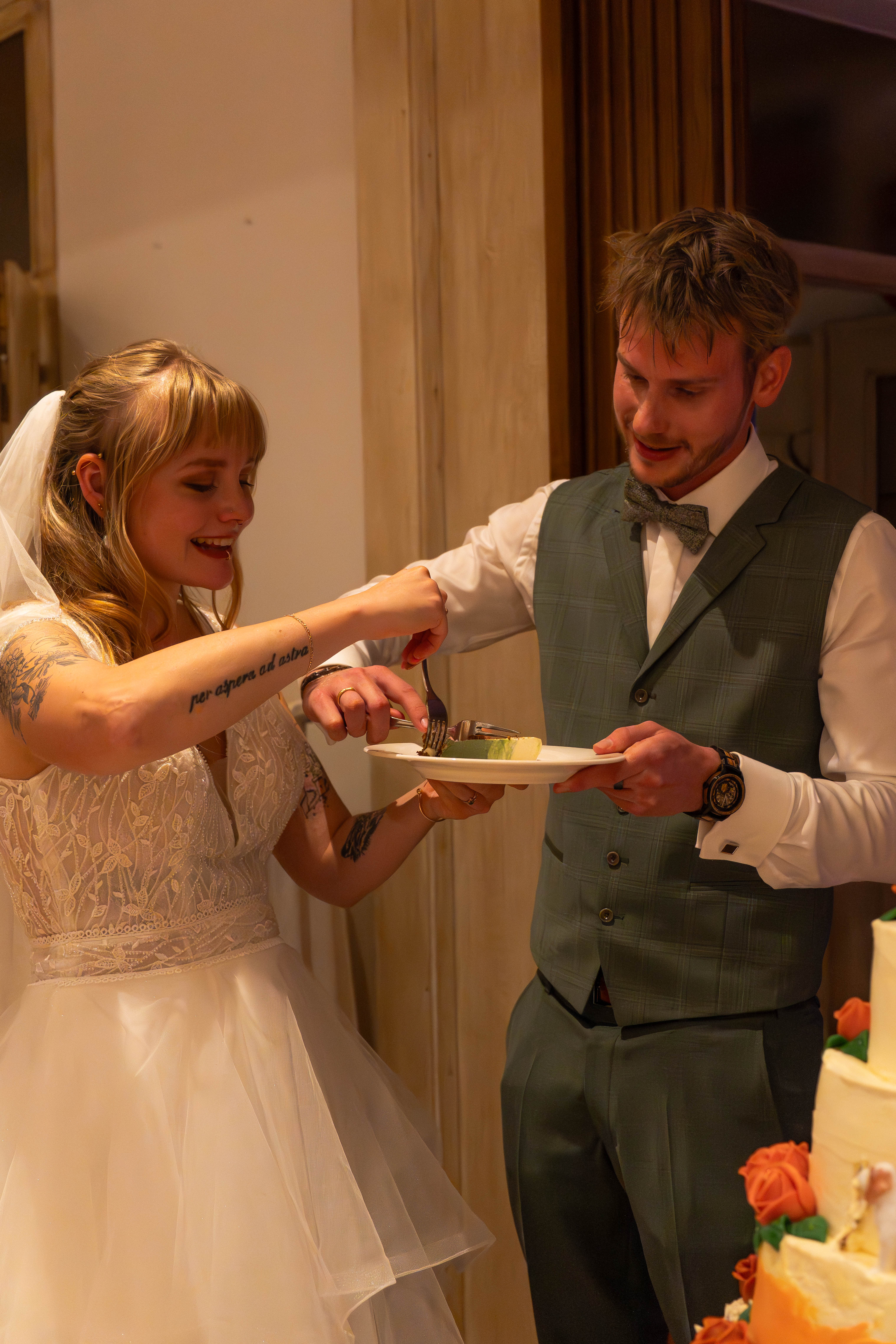 Working with my family on this special wedding day was a heartfelt experience. I captured the moment the cake was cut, preserving the joy and celebration of the event. Additionally, I created two intimate portraits for my family after the main photographer had left, ensuring these memories were beautifully documented and treasured.